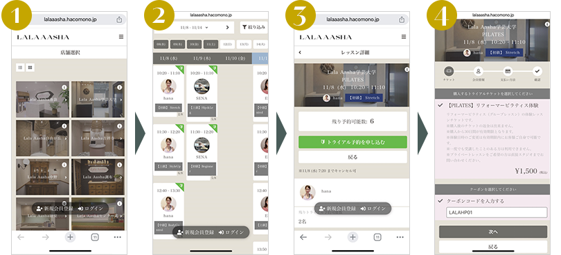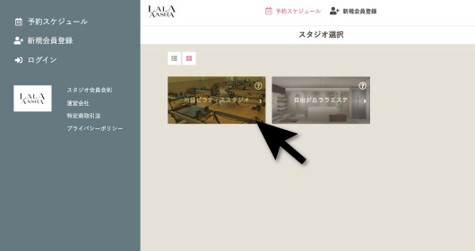 事前にご予約をお願いします受講されたいスタジオ・コースを選択いただいた後、事前予約のご登録をお願い致します。